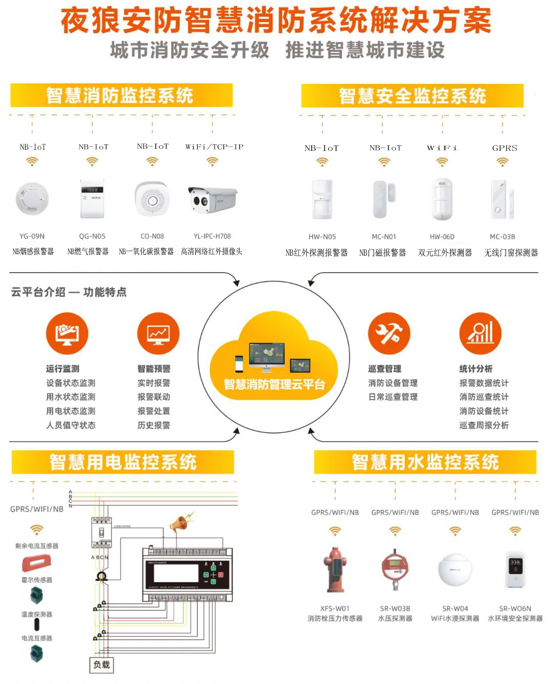 針對(duì)“九小場(chǎng)所”的特點(diǎn),建立由感煙器-可燃?xì)怏w監(jiān)測(cè)器-防漏電監(jiān)測(cè)器-報(bào)警按鈕4款設(shè)備組合而成的消防環(huán)境監(jiān)測(cè)報(bào)警系統(tǒng),內(nèi)嵌NB-loT物聯(lián)網(wǎng)模塊,使設(shè)備具備通訊上報(bào)能力,支持火災(zāi)環(huán)境監(jiān)測(cè)、異常上報(bào)、火災(zāi)報(bào)警等功能。