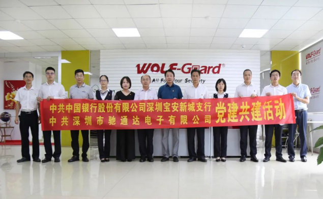 活動(dòng)期間,中行領(lǐng)導(dǎo)一行在馳通達(dá)集團(tuán)董事長萬騰馳陪同下,實(shí)地參觀考察了馳通達(dá)黨建文化建設(shè)長廊和智慧安全防護(hù)演示廳,通過學(xué)習(xí)觀摩與雙向交流,進(jìn)一步統(tǒng)一了雙方黨員干部的思想認(rèn)識(shí),更加深刻理解企業(yè)文化的內(nèi)涵。中國銀行深圳寶安支行鐘俊副行長對(duì)馳通達(dá)黨支部建設(shè)成果給予了充分肯定,對(duì)馳通達(dá)很早就獲得深圳市、區(qū)、街道“兩新工委先進(jìn)基層黨組織、街道先進(jìn)基層黨組織”等眾多榮譽(yù)表示贊賞。馳通達(dá)集團(tuán)董事長萬騰馳表示,馳通達(dá)黨支部已成為教育黨員職工“爭先創(chuàng)優(yōu)”的重要陣地,馳通達(dá)始終堅(jiān)持“把黨員培養(yǎng)成骨干、把骨干發(fā)展為黨員”的用人理念,讓馳通達(dá)黨員和企業(yè)員工時(shí)刻感受到黨的溫暖。此舉與中國銀行深圳新城支行黨支部的理念不謀而合,作為黨建結(jié)對(duì)共建單位,雙方約定將以此次聯(lián)創(chuàng)為契機(jī),加強(qiáng)黨組織與黨員溝通交流,尋求價(jià)值認(rèn)同、資源共享、優(yōu)勢(shì)互補(bǔ),促進(jìn)銀企構(gòu)建戰(zhàn)略伙伴關(guān)系,在國外疫情防控持續(xù)的情況下,對(duì)結(jié)對(duì)共建單位給予授信額度支持,有效服務(wù)銀企轉(zhuǎn)型創(chuàng)新發(fā)展,實(shí)現(xiàn)合作共贏,進(jìn)一步夯實(shí)黨建工作基礎(chǔ)。