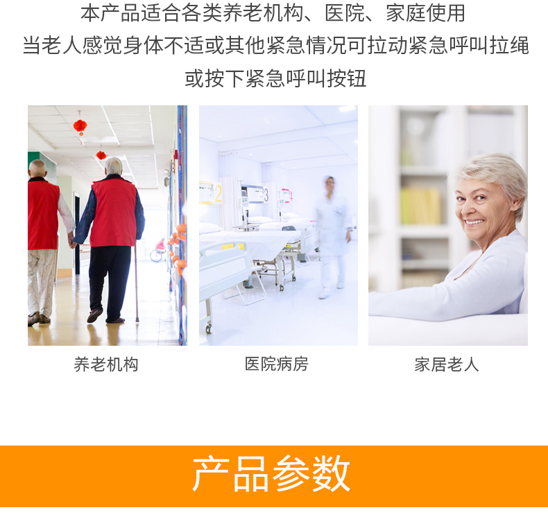 應(yīng)用:適用于工廠、醫(yī)院、小區(qū)和養(yǎng)老院等場(chǎng)所的緊急求助。