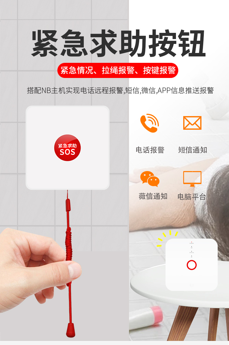 概述:老人小孩獨(dú)自在家,如遇突發(fā)事件,即可按下隨身攜帶的緊急按紐同時(shí)觸發(fā)報(bào)警,添加設(shè)備的家人手機(jī)就可收到報(bào)警消息,并在第一時(shí)間進(jìn)行處理。